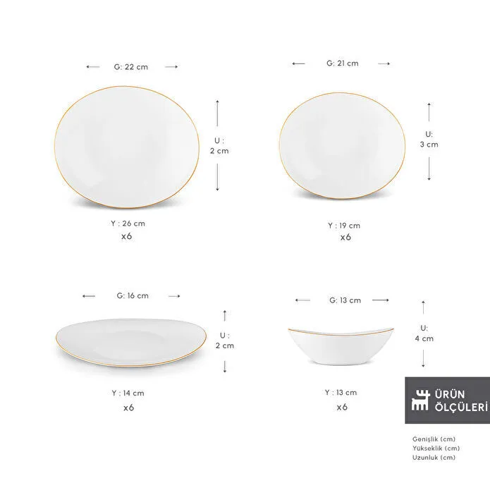 Karaca Pure 24-Piece Dinner Set for 6 People, Gold