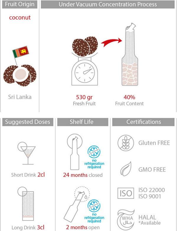 Most of our coconut ingredients are of Sri Lankan origin. High consumption in beverages in the tiki category or used also for desserts and coconut-flavoured sauces.